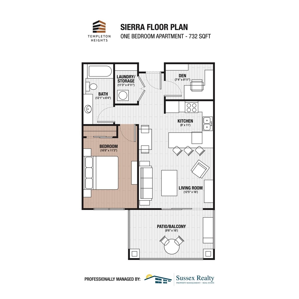 1 Bed 1 Bath - Floorplan 10 1 Bed + Den