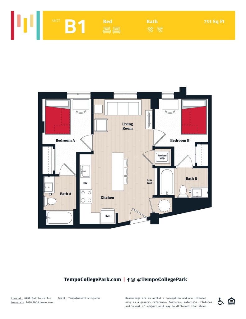 2 Beds, 2 Baths, 753 sq ftAvailability Details