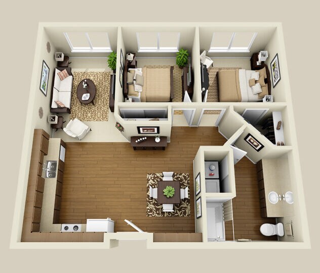 2 Beds, 1 Bath, 846 sq ftModel Gallery