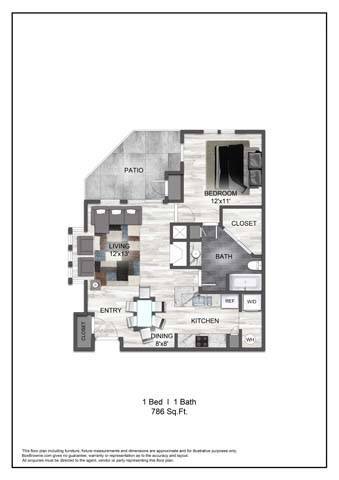 Apartment Model: A3a$1,4341 Bedroom, 1 Bath, 786 sq ftAvailable NowFloor plans are artist's rendering. All dimensions are approximate. Actual product and specifications may vary in dimension or detail. Not all features are available in every rental home. Prices and availability are subject to change. Base rent is based on monthly frequency. Additional fees may apply, such as but not limited to package delivery, trash, water, amenities, etc. Deposits vary. Please see a representative for details.