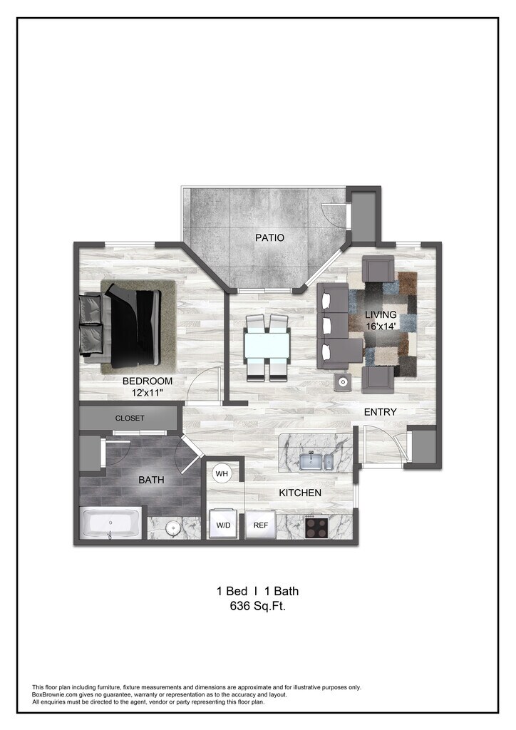 Unit: 366 - Floorplan 1 Apartment Unit: 169Apartment Model: A2$1,2441 Bedroom, 1 Bath, 636 sq ftAvailable NowFloor plans are artist's rendering. All dimensions are approximate. Actual product and specifications may vary in dimension or detail. Not all features are available in every rental home. Prices and availability are subject to change. Base rent is based on monthly frequency. Additional fees may apply, such as but not limited to package delivery, trash, water, amenities, etc. Deposits vary. Please see a representative for details.