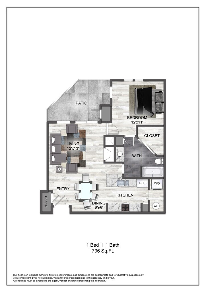 1 Bed, 1 Bath, 736 sq ftAvailable NowModel Gallery