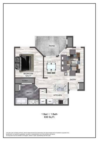 Apartment Model: A2From $1,0641 Bedroom, 1 Bath, 636 sq ftAvailable NowFloor plans are artist's rendering. All dimensions are approximate. Actual product and specifications may vary in dimension or detail. Not all features are available in every rental home. Prices and availability are subject to change. Base rent is based on monthly frequency. Additional fees may apply, such as but not limited to package delivery, trash, water, amenities, etc. Deposits vary. Please see a representative for details.