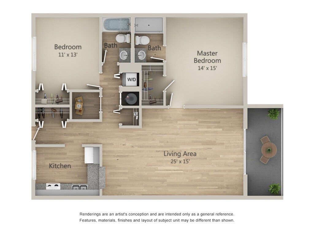1 Bed, 1.5 Baths, 800 sq ftAvailable NowModel Gallery