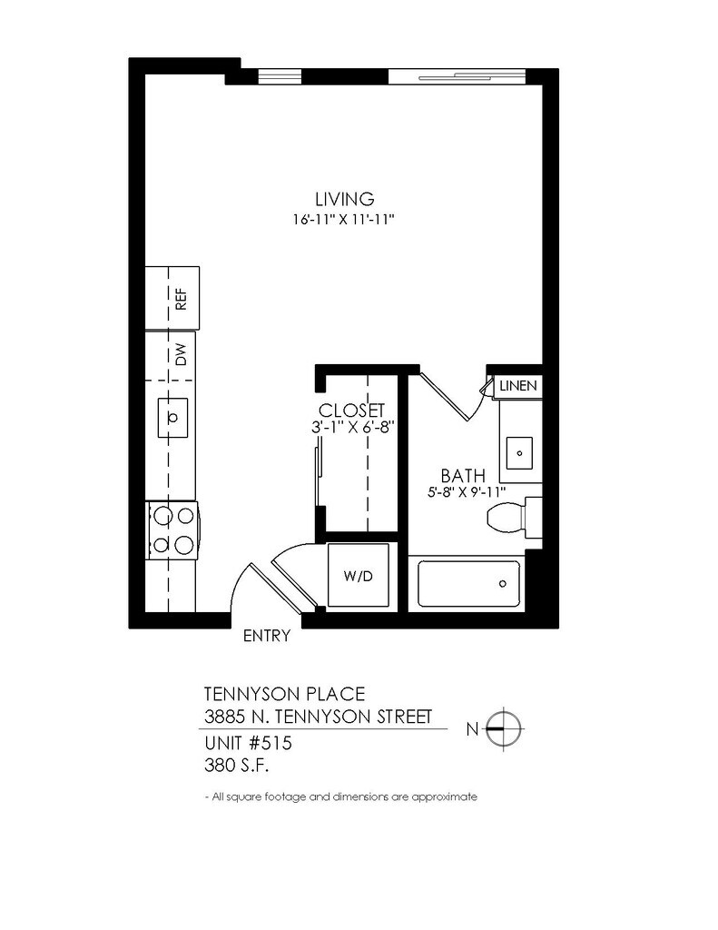 Studio - Floorplan 10 Apartment Unit: 515Apartment Model: StudioStudio, 1 Bath, 380 sq ftAvailable Now![]()