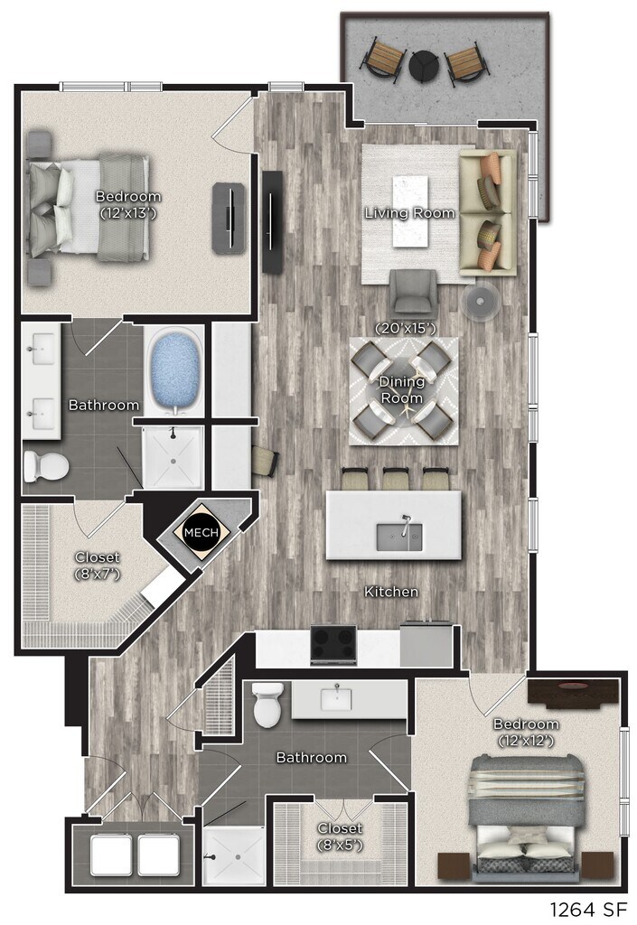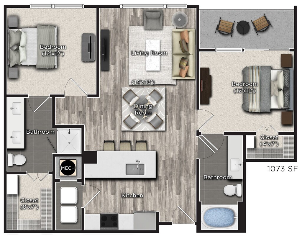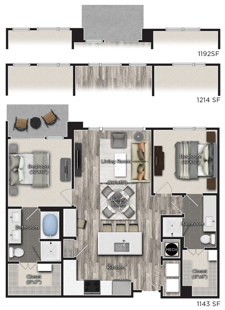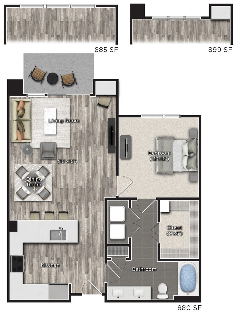 1 Bed, 1 Bath, 722-727 sq ftAvailable NowModel Gallery