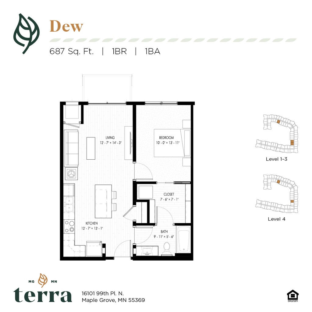 Apartment Model: DewFrom $1,7181 Bedroom, 1 Bath, 687 sq ftAvailable Soon![]()