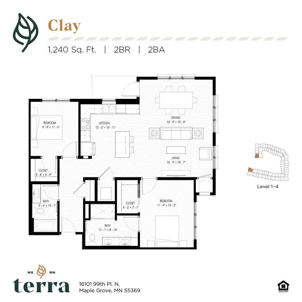 Terracotta - Floorplan 1 Apartment Unit: 240Apartment Model: TerracottaCall For Rates1 Bedroom, 1 Bath, 945 sq ftAvailable NowApartment Unit: 340Apartment Model: Terracotta$1,9371 Bedroom, 1 Bath, 945 sq ftAvailable January 2, 2026Floorplan Dew