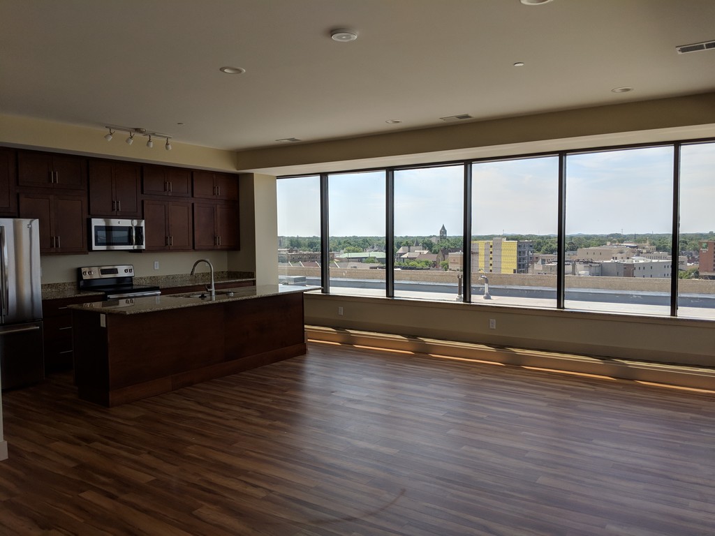 Terrace Flats are conveniently located in downtown Muskegon next to the Muskegon Farmers Market and within walking distance to restaurants, distilleries and shopping. Located on the top two floors of Terrace Plaza, these market rate apartments have excellent views of downtown Muskegon and Muskegon Lake. Enjoy Amazing Views of Muskegon Lake and downtown Muskegon from one of the tallest buildings in the area! Terrace Flats residents enjoy their own washer and dryer, granite countertops and stainless steel appliances. Also available to all residents is a fitness center along with a common area lounge on the top floor and an outdoor patio with grilling area!