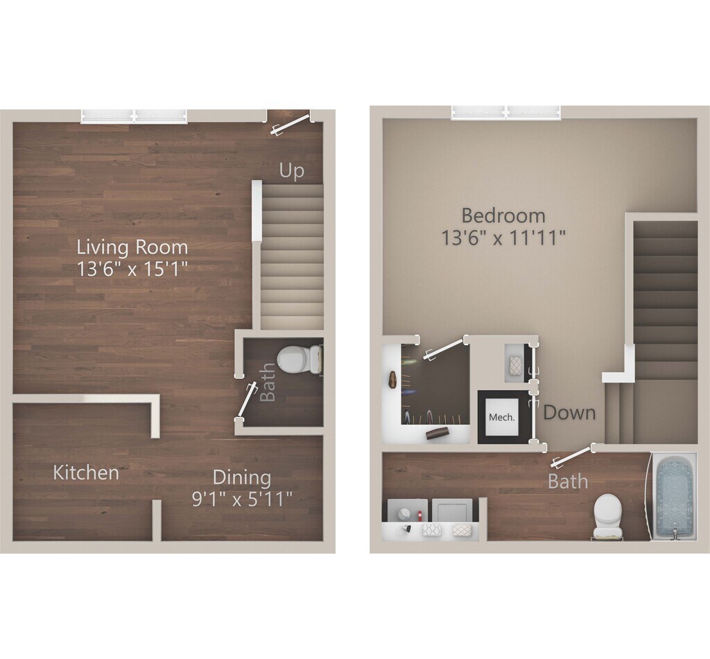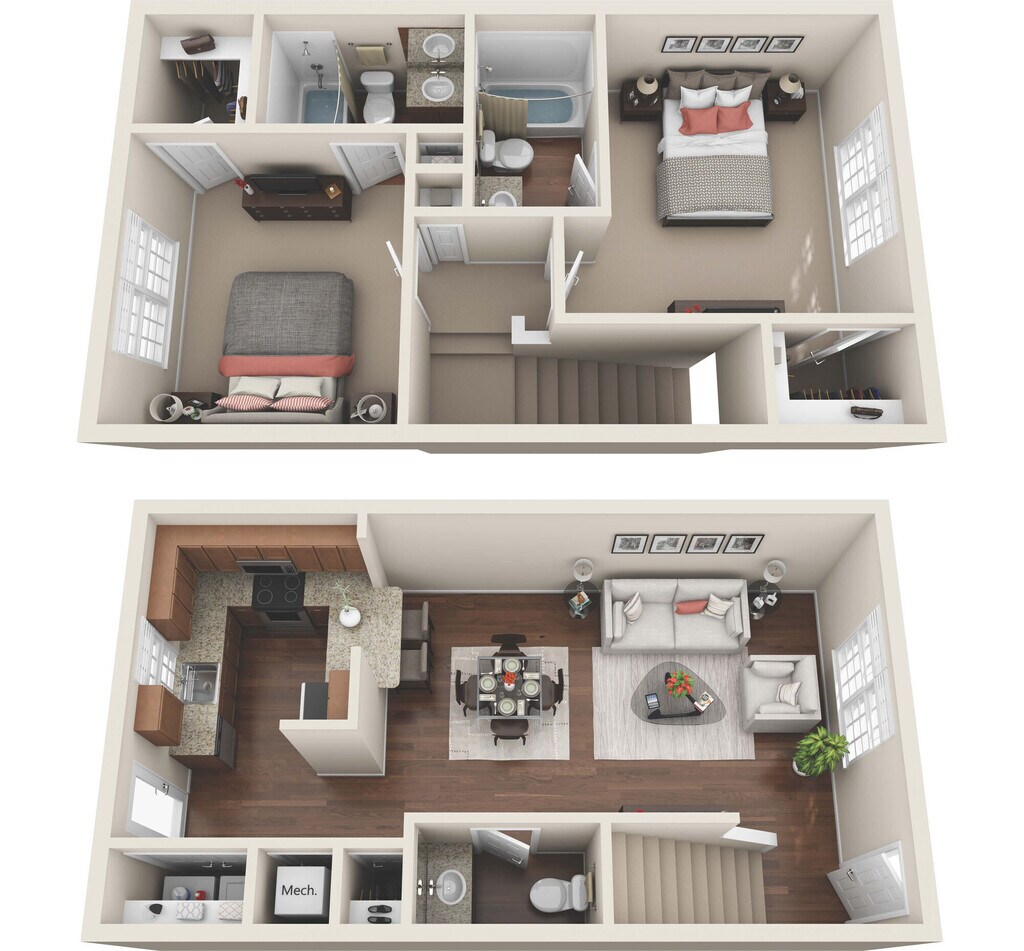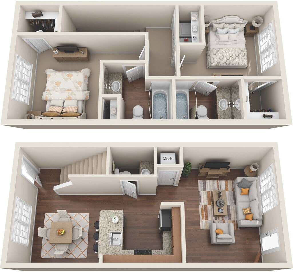 1 Bed, 1.5 Baths, 864 sq ftModel Gallery