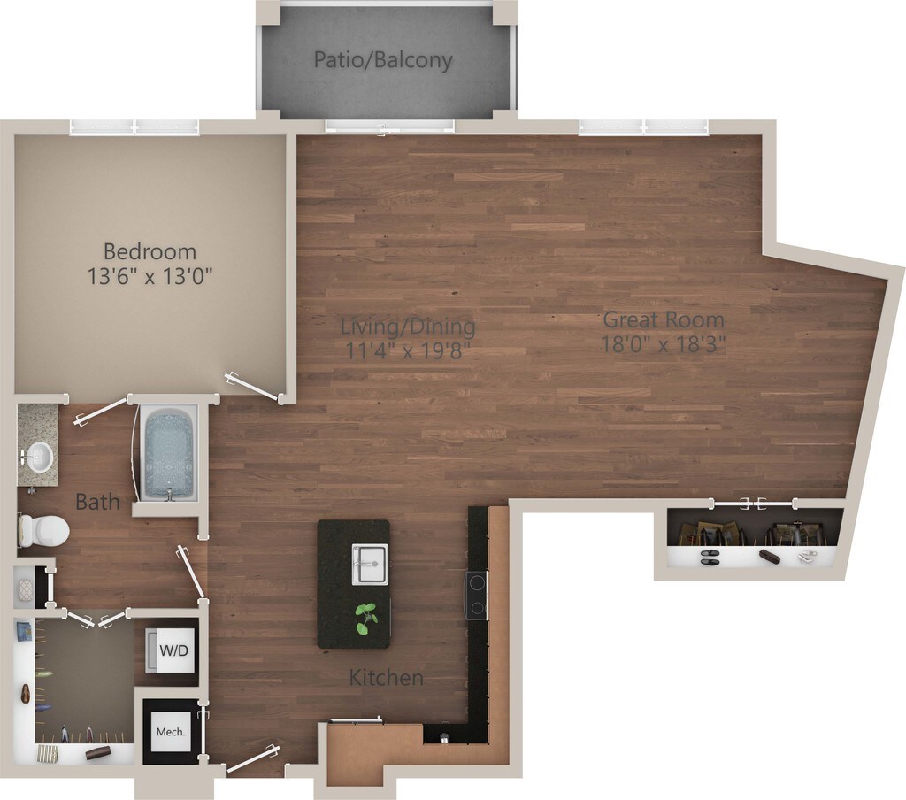 1 Bed, 1 Bath, 1136 sq ftLargest 1 BedroomThis is the largest 1 Bedroom at this PropertyModel Gallery