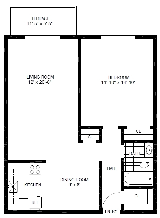 1 Bedroom / 1 Bath - Floorplan 1 ![]()