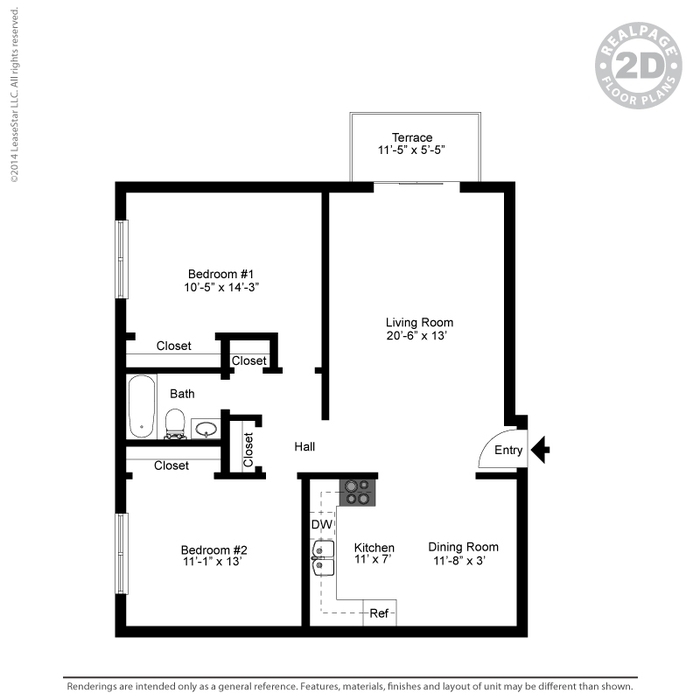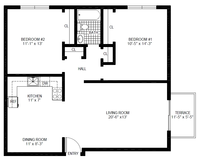 1 Bedroom / 1 Bath - Floorplan 2 2 Bedrooms