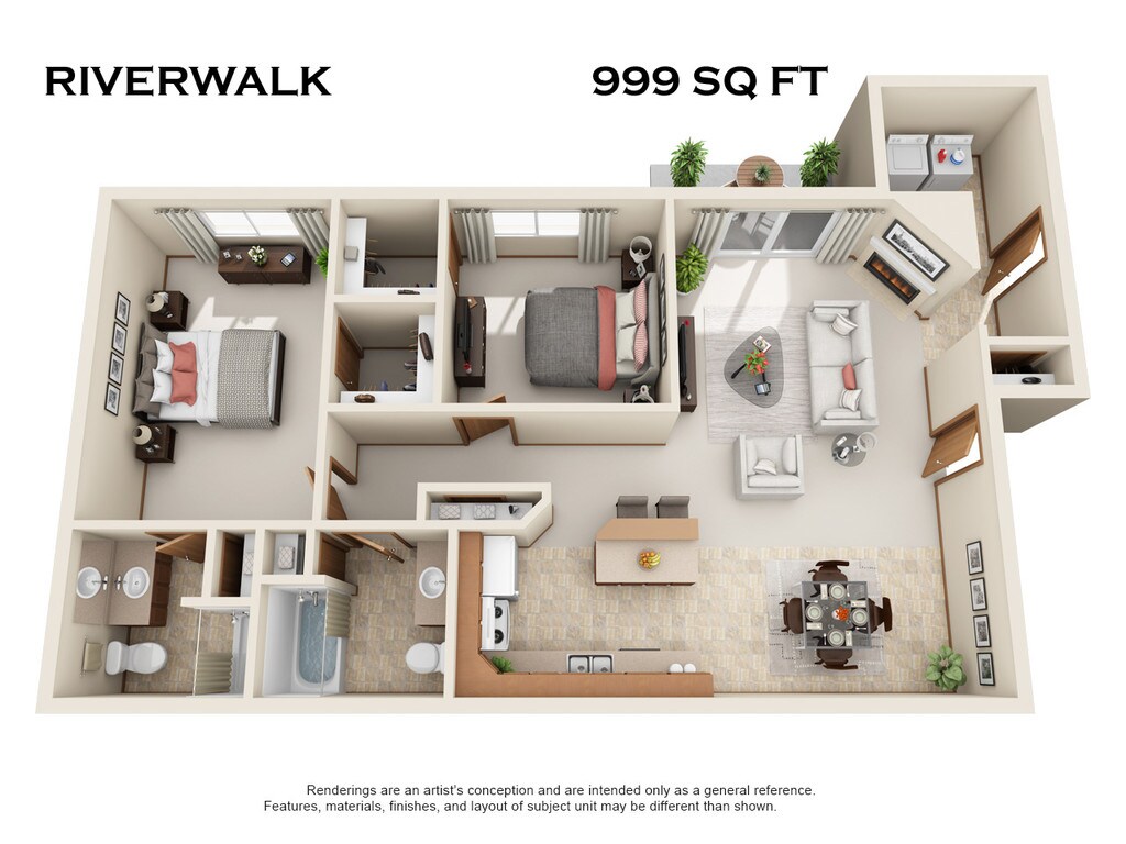 Apartment Model: Riverwalk$1,3002 Bedroom, 2 Bath, 999 sq ftAvailable November 25, 2025![]()