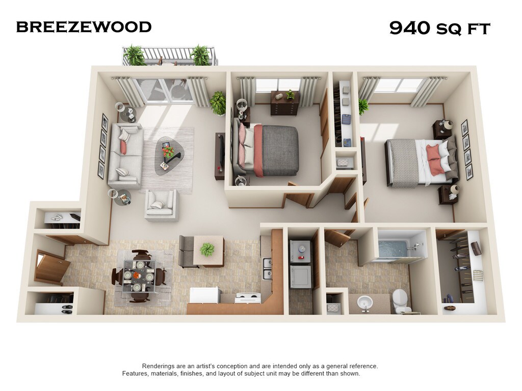 Apartment Model: Breezewood$1,2752 Bedroom, 1 Bath, 940 sq ftAvailable November 24, 2025![]()