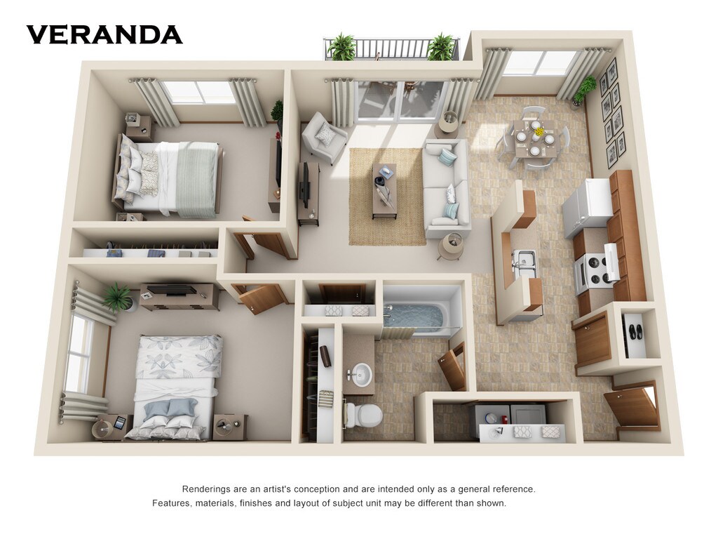 Apartment Model: Veranda$1,1002 Bedroom, 1 Bath, 950 sq ftUnavailableFloorplansPhotos![]()