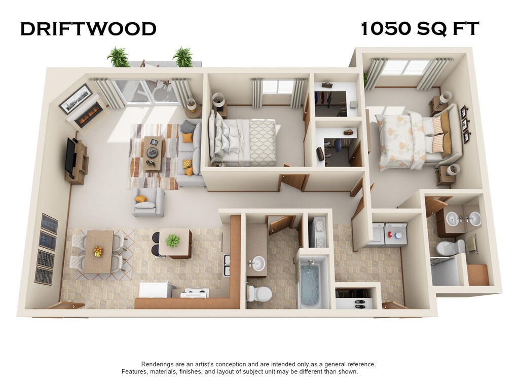 Apartment Model: Driftwood$1,3002 Bedroom, 2 Bath, 1050 sq ftUnavailable![]()