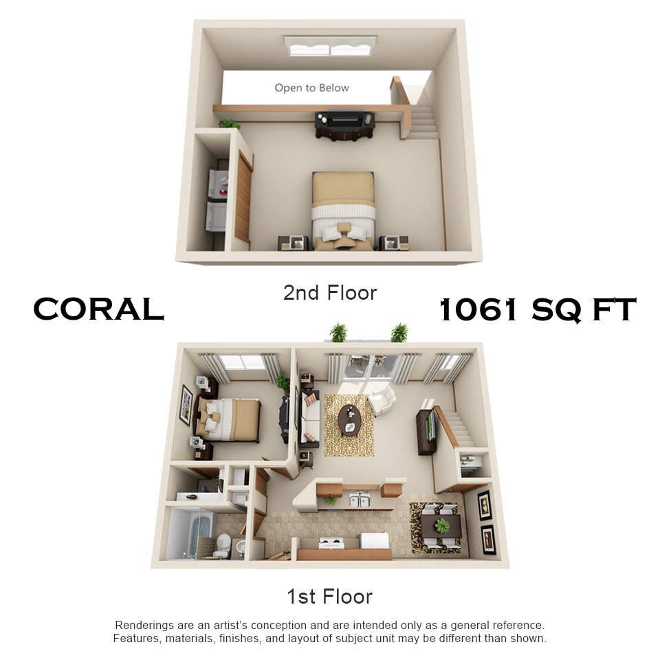Apartment Model: Coral$1,1001 Bedroom, 1 Bath, 950 sq ftAvailable Now![]()