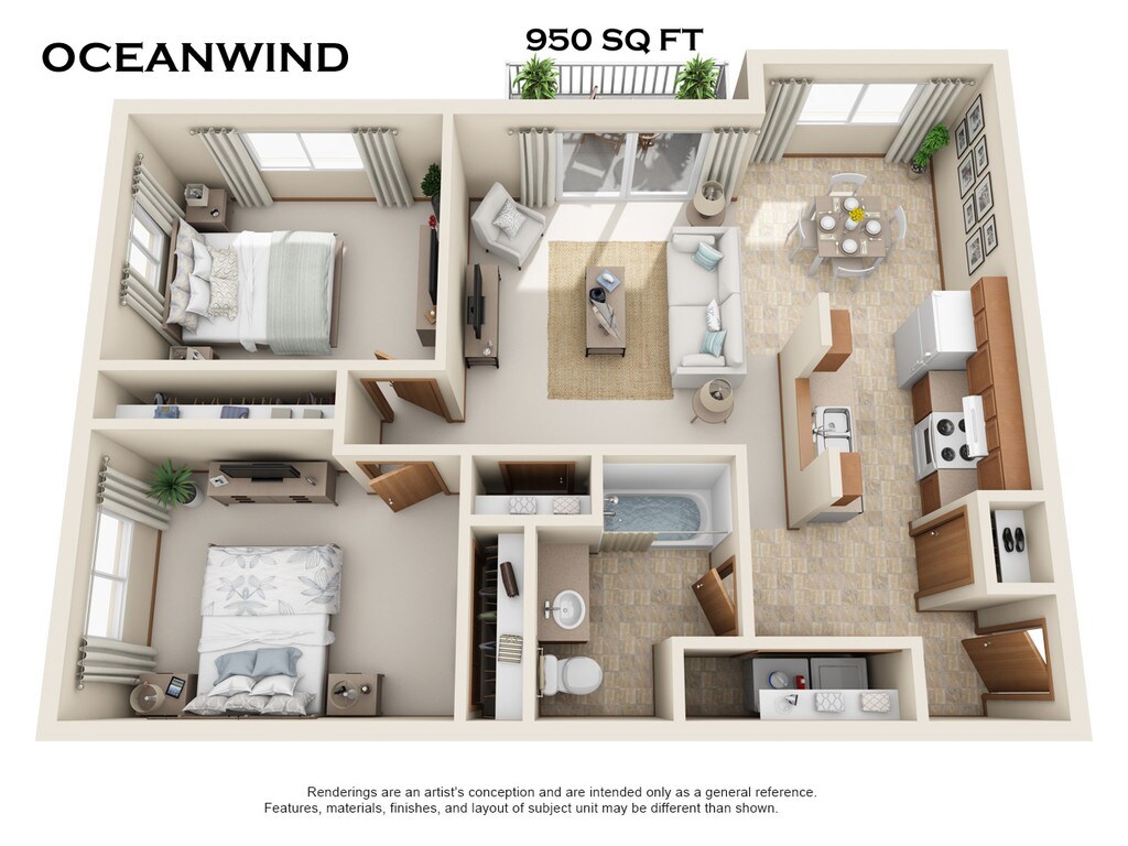 Apartment Model: Oceanwind$1,1002 Bedroom, 1 Bath, 1061 sq ftAvailable June 10, 2026![]()