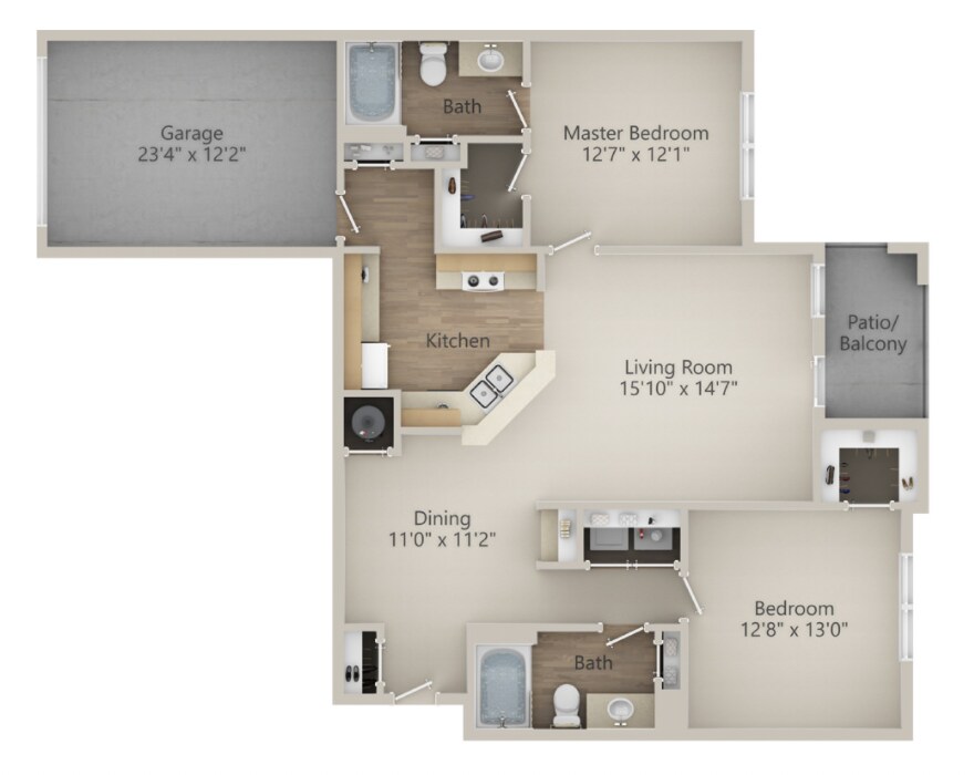 2 Beds, 2 Baths, 1324 sq ftAvailable NowLargest 2 BedroomThis is the largest 2 Bedroom at this PropertyModel Gallery