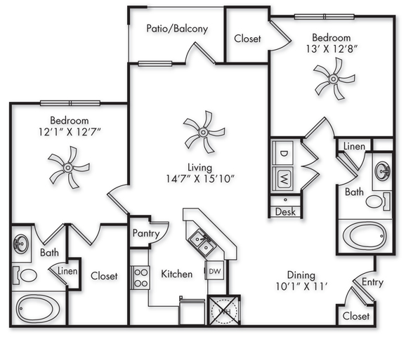 2 Beds, 2 Baths, 1186 sq ftAvailable NowModel Gallery