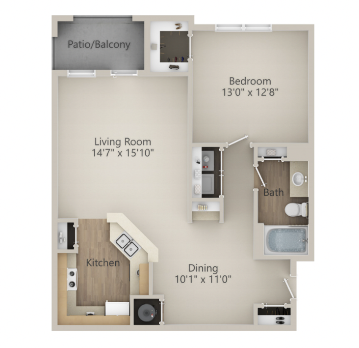Apartment Model: A1From $1,0551 Bedroom, 1 Bath, 890 sq ftAvailable Now![]()