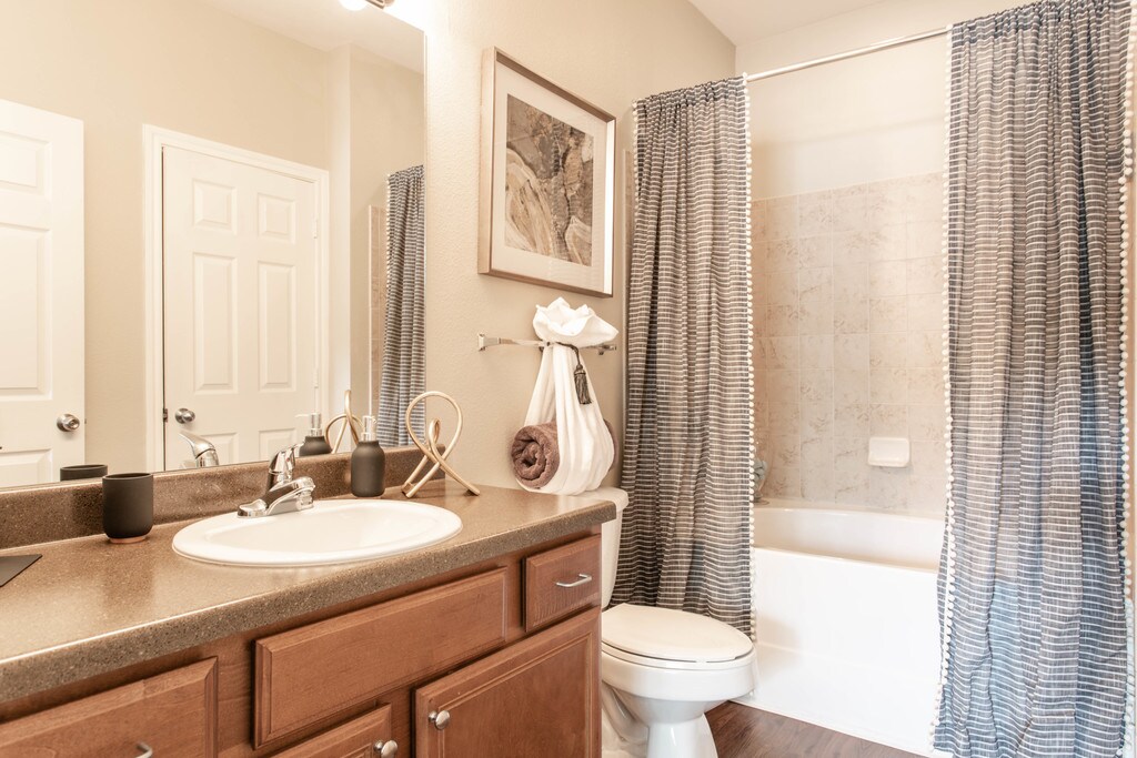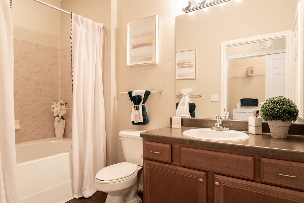 We are now accepting in-person and self-guided tours. Scheduled appointments and virtual tours are also available. Please schedule yours today! At The Terraces at Fall Creek, residents discover a wealth of fine interior features and state-of-the-art appliances. This luxurious community of one, two and three bedroom apartments is near the Sam Houston Tollway, just moments from the local golf course. Come visit The Terraces at Fall Creek and tour these neighborly Humble, TX apartments. After a day of bass fishing at Lake Houston, come home to your apartment at The Terraces at Fall Creek and fire up the poolside barbecue grills for a delicious meal. Resort-like amenities complement your living experience, giving you immediate destinations for rest, relaxation and fun. The apartment interiors at The Terraces at Fall Creek have everything you need and much more. Homes feature private patios, built-in computer desks, and attached single car garages are available in select models. Our gourmet kitchens are equipped with black appliances, tiled backsplashes and sleek cabinets. Outside your apartment is a wealth of luxury amenities that thread their way throughout the community. Spend the afternoon in the swimming pool surrounded by swaying palm trees or take a nap in the poolside lounge chairs. If you need to wash and detail your vehicle, stop by the on-site car care center. Give yourself the apartment you have always wanted and lease a home at The Terraces at Fall Creek in Humble, TX.