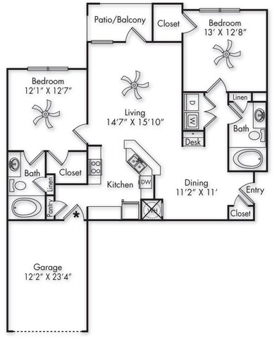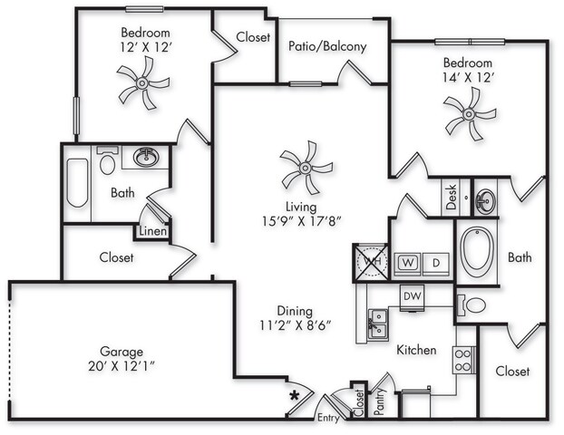 A1G - Floorplan 2 2 Bedrooms