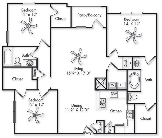 Terraces at Fall Creek offers 1 to 3 Bedroom apartments starting from $1,055 and having 890–1,491 sq ft. Here is the current pricing and availability: