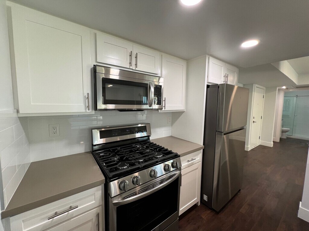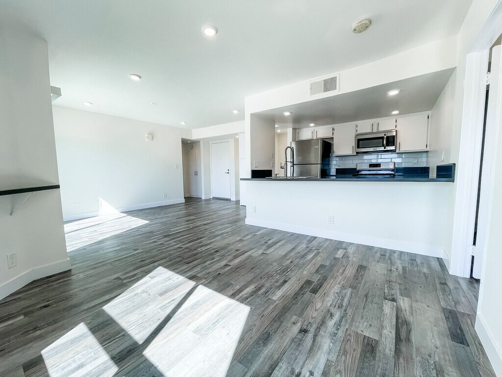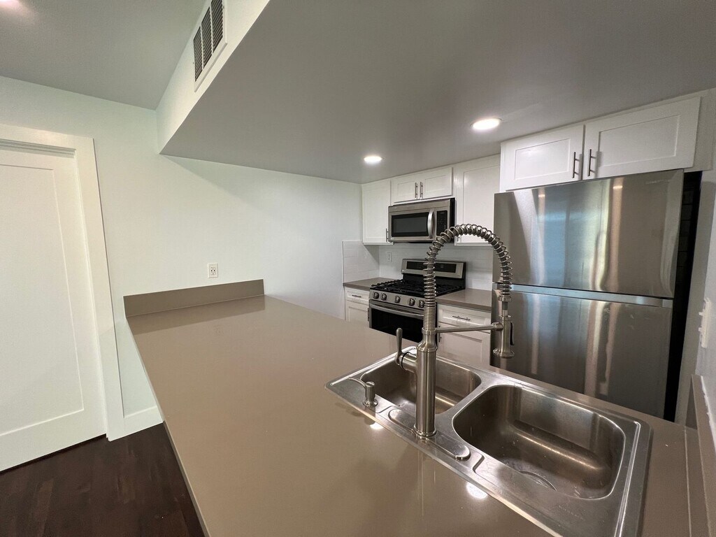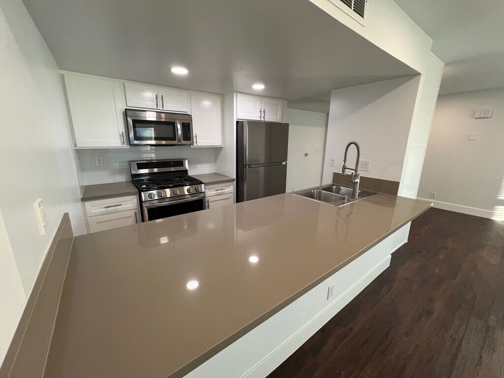 Available NOW - ask about our MOVE-IN SPECIAL! 3rd & top floor, lots of natural light. 15-foot high ceilings in the living room. Going through total renovation! Full kitchen with stainless steel appliances In-Unit Washer & Dryer Be the first to move in to one of our spacious, newly-renovated 1 bedroom, 1 bath apartment in Lake Balboa! Steps from beautiful Lake Balboa Park, shopping, freeways, and public transportation. NEWLY-RENOVATATED APARTMENT FEATURES: - Hardwood flooring throughout - Recessed lighting - Bathroom features built-in Bluetooth speaker which syncs to most smartphones - Brand new quartz countertops - Industrial stainless kitchen faucet - Stainless steel gas stove, microwave, dishwasher - Brand new subway tiling - 4 inches crown & base molding throughout - Oversized windows - Spacious balcony - Freshly-painted - An in unit high-end washer dryer combo - Private unit facing tree-lined street - Convenient USB outlets COMMUNITY AMENITIES - Sparkling plunge pool - On-site laundry - Secured parking for one vehicle - Ample street parking for guests ***PETS allowed with deposit*** **PLEASE NOTE: Explication images may not be of the exact but comparable unit. * Price shown is base rent and may not include non-optional fees and utilities. *Price and availability is subject to change without notice. * Square footage definitions vary. Displayed square footage is approximate.