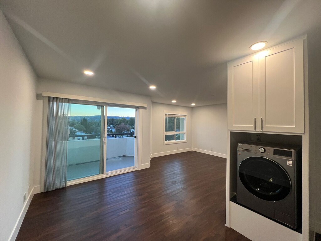 Highly-coveted top floor 2 bedrooms & 2 bathrooms unit is ready for move-in! Features include: - Top story unit with serene Mountain Views from every room - 2 bedrooms with custom built closets - 2 full baths with lighted mirrors - Spacious balcony for additional living space - In-unit washer & dryer (all-in-one) - New double pane windows - Open kitchen with stainless steel appliances, including gas stove, microwave, refrigerator and dishwasher - Luxury faux wood vinyl flooring throughout - Recessed lighting - Gated / secure parking - Community spaces including seating, gas grill, and plunge pool - Well-behaved pets considered on a case-by-case basis The results of all of the above is that you and your family will thrilled to call this apartment home! Our community is a safe and warm atmosphere. You'll also enjoy the support of our attentive management team, dedicated to ensuring your comfort and satisfaction. Located just minutes from the 405 and 101 freeways, you’ll have easy access to Sherman Oaks and Encino, along with the beautiful Lake Balboa and Sepulveda Dam Recreation Area for outdoor adventures. A fun five minute bike ride away! Contact us today to schedule your tour!