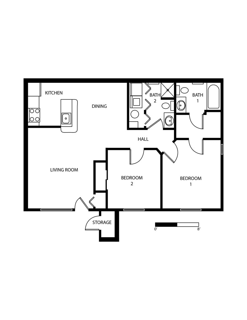 Apartment Model: 2Bedroom 2BathFrom $1,2042 Bedroom, 2 Bath, 950 sq ftAvailable NowFloorplansPhotos![]()