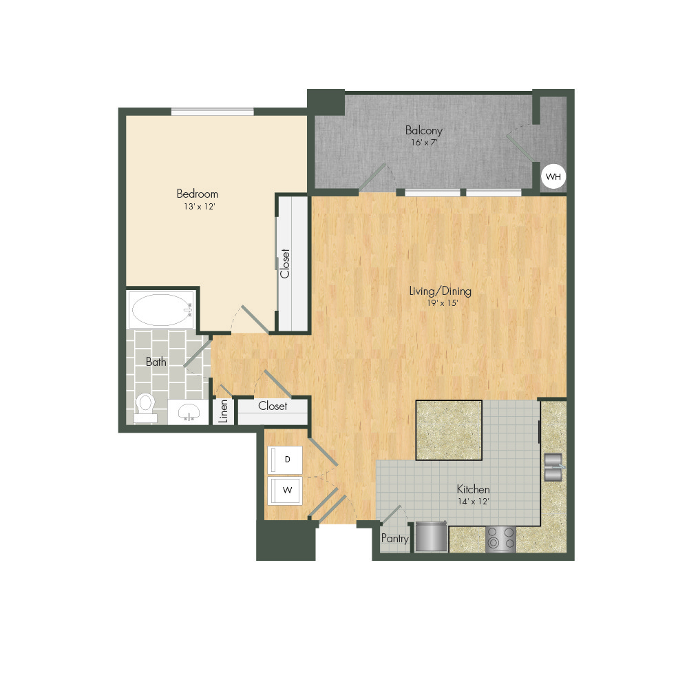 Apartment Model: Chelsea$2,4501 Bedroom, 1 Bath, 792 sq ftAvailable NowFloor plans are artist's rendering. All dimensions are approximate. Actual product and specifications may vary in dimension or detail. Not all features are available in every rental home. Prices and availability are subject to change. Base rent is based on monthly frequency. Additional fees may apply, such as but not limited to package delivery, trash, water, amenities, etc. Deposits vary. Please see a representative for details.