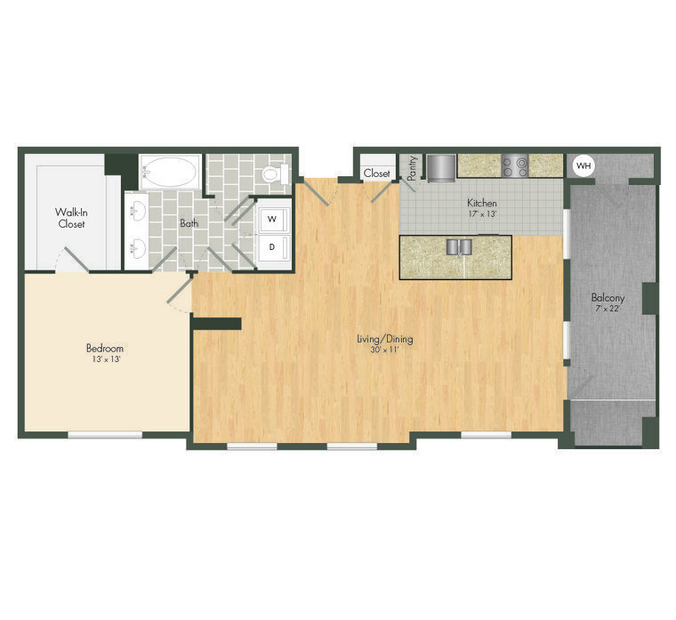 1 Bed, 1 Bath, 1017 sq ftLargest 1 BedroomThis is the largest 1 Bedroom at this PropertyModel Gallery
