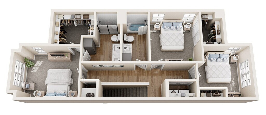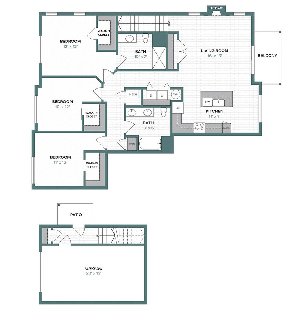 - Spacious One, Two, and Three Bedroom Floor Plans
