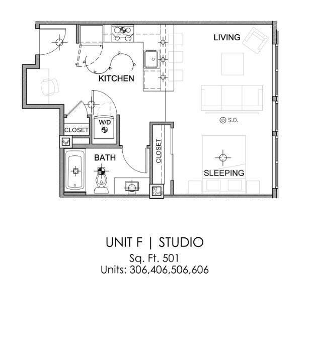 Studio - Floorplan 1 Apartment Unit: 306Apartment Model: Studio$1,649Studio, 1 Bath, 501 sq ftAvailable NowFloorplansPhotos![]()