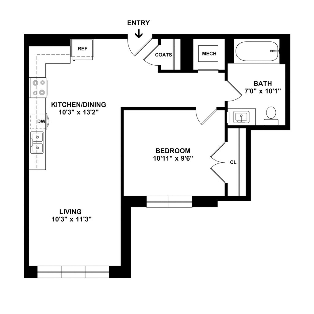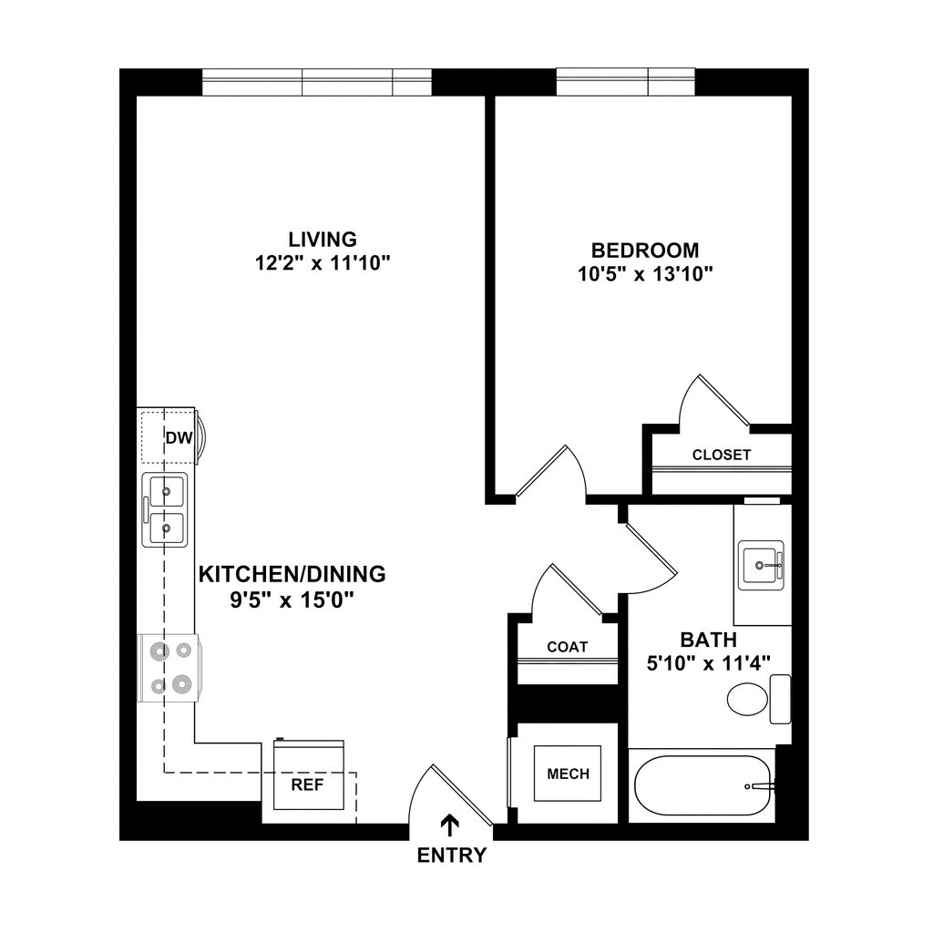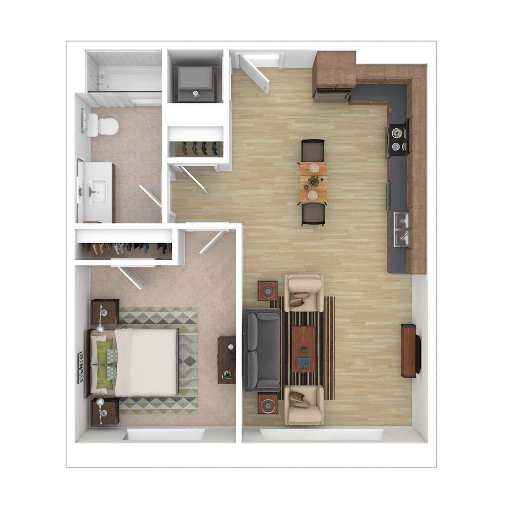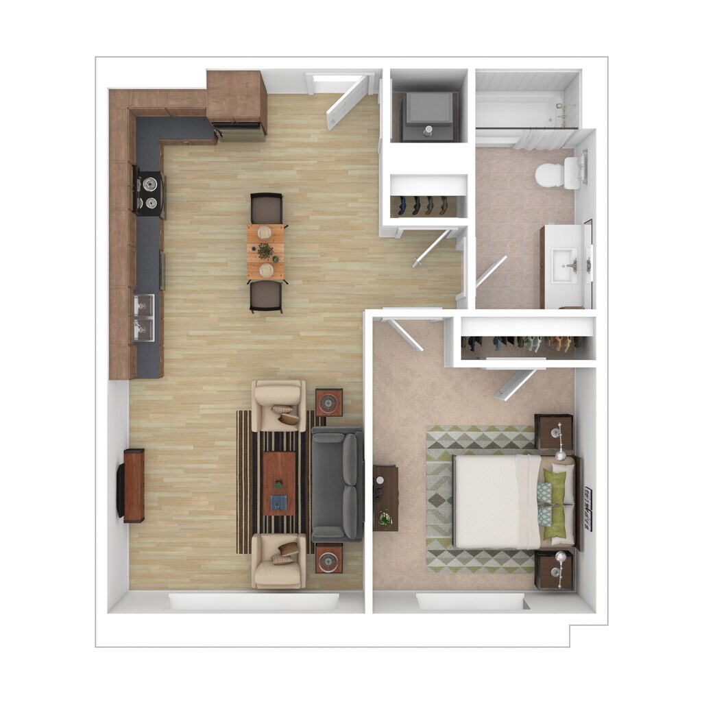 Apartment Model: 1B-FFrom $8381 Bedroom, 1 Bath, 550 sq ftUnavailable![]()
