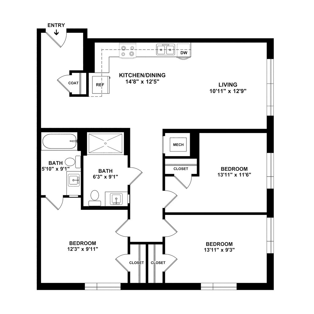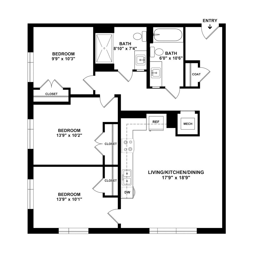Apartment Model: 1B-BFrom $1,4531 Bedroom, 1 Bath, 676 sq ftUnavailable![]()