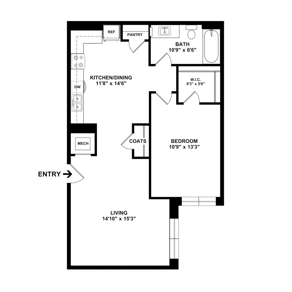 1 Bed, 1 Bath, 617 sq ftAvailability Details