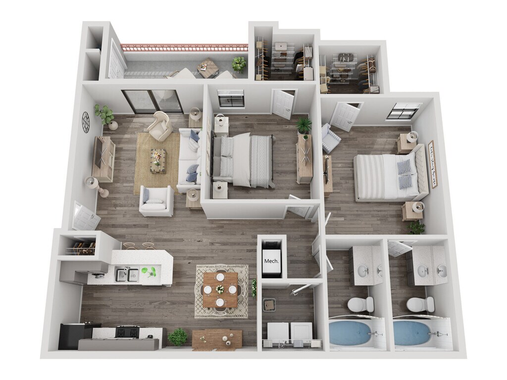 2 Beds, 2 Baths, 1067 sq ftTotal Monthly PriceAvailable NowModel Gallery
