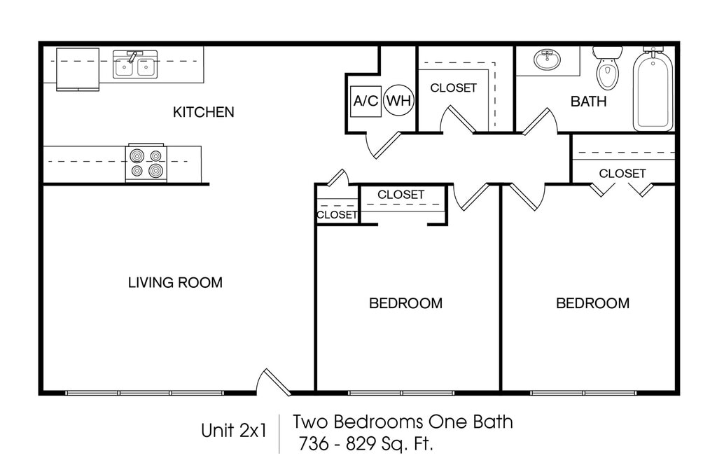 2 Beds, 1 Bath, 829 sq ftAvailable Nov 8Model Gallery