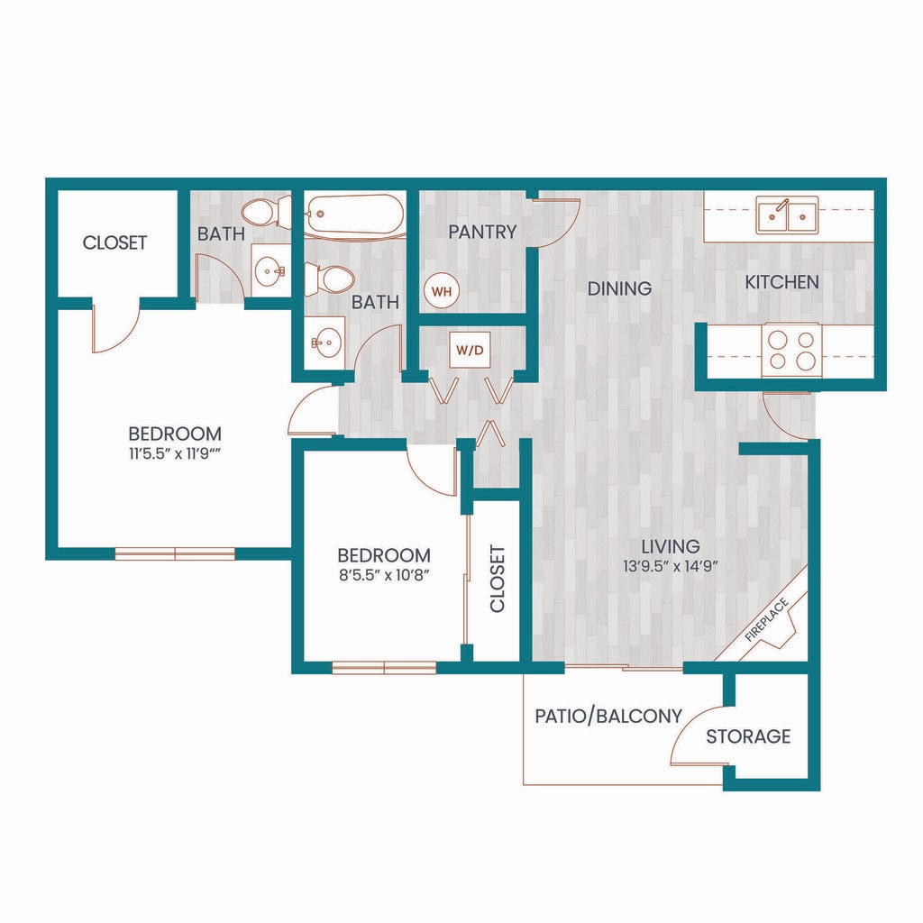Apartment Model: 2x2B R1From $1,9972 Bedroom, 2 Bath, 900 sq ftAvailable Now![]()