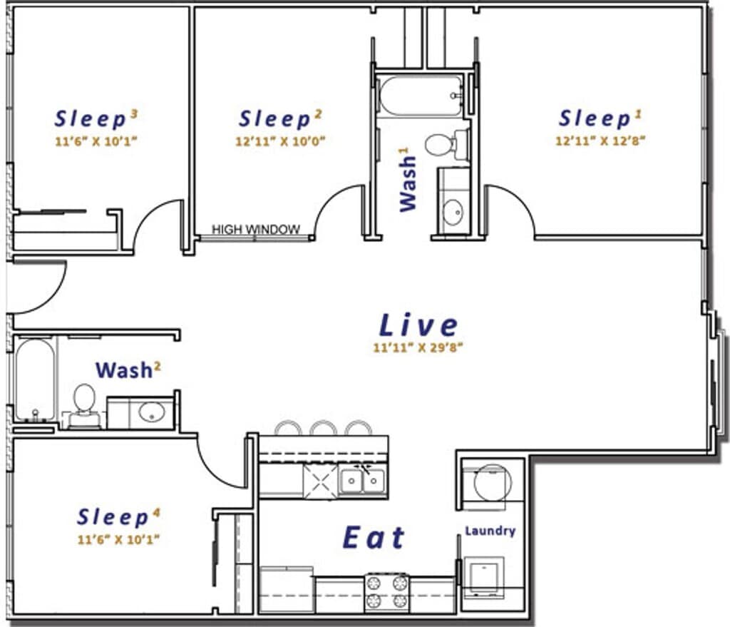 Apartment Unit: 204Apartment Model: 4BR/2.0BA$2,4954 Bedroom, 2 Bath, 1308 sq ftAvailable April 11, 2026![]()