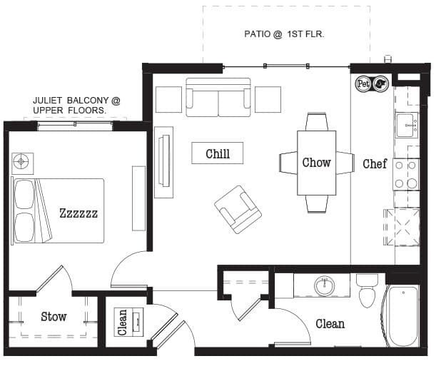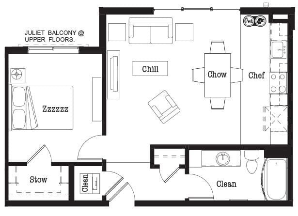 Urban One Bedroom U2 - Floorplan 1 Apartment Unit: 317Apartment Model: Urban One Bedroom U2$1,8491 Bedroom, 1 Bath, 747 sq ftAvailable Now![]()