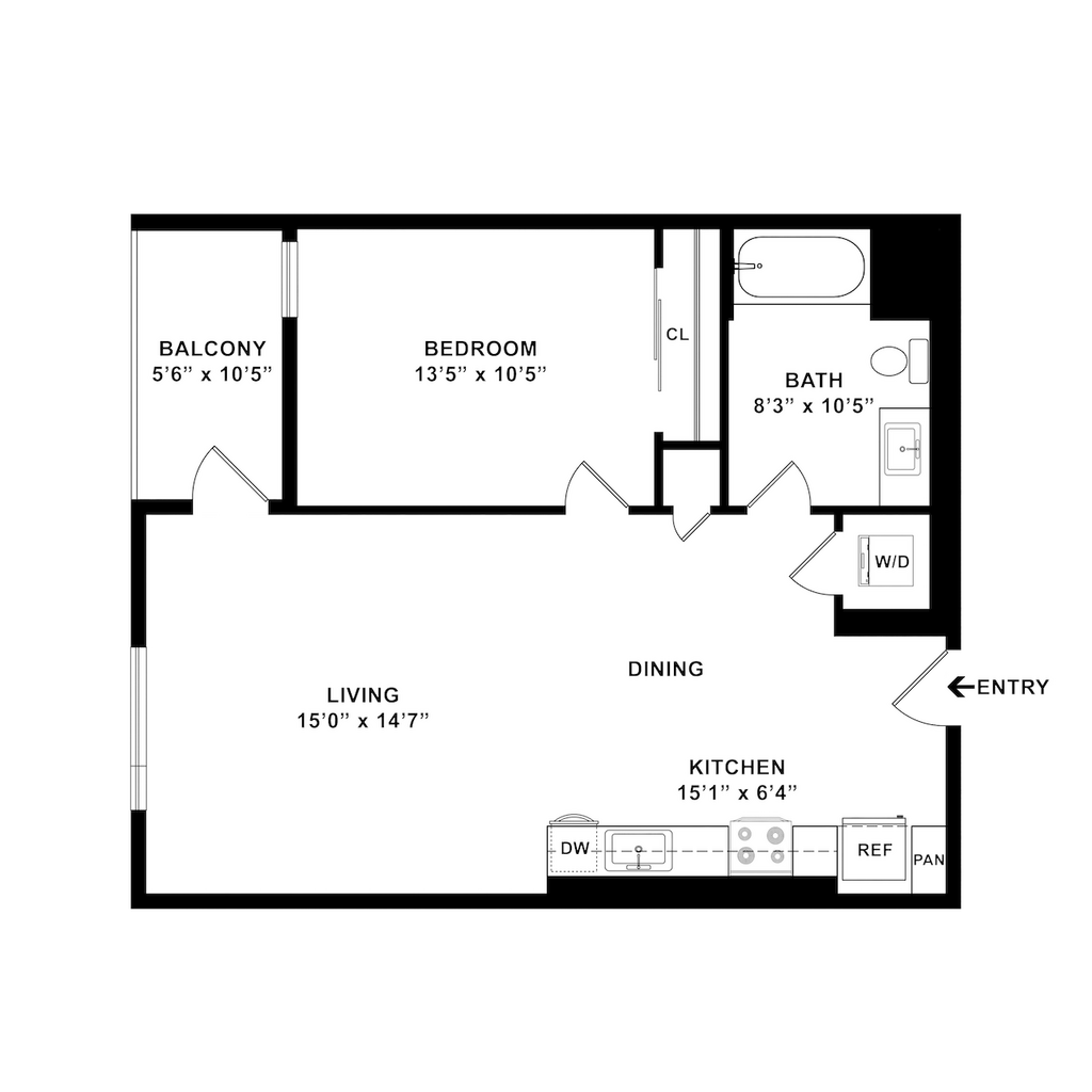 Studio, 1 Bath, 450-680 sq ftAvailable NowModel Gallery