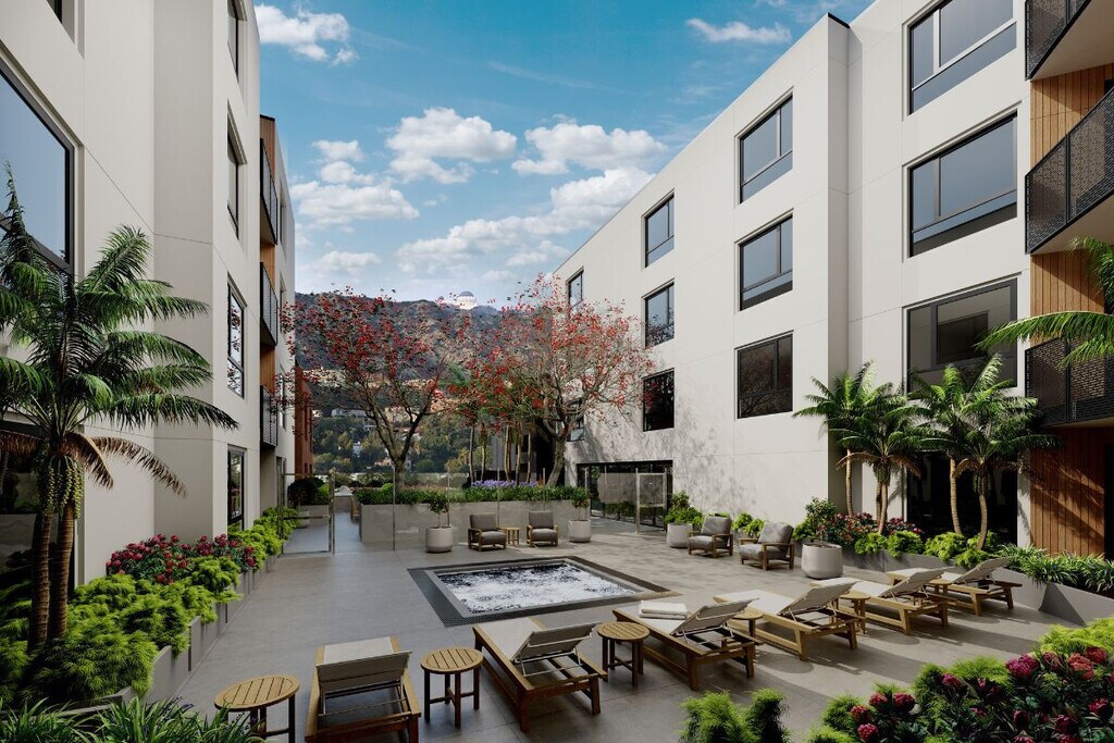 The 1860, is a property grounded in the unique history and unparalleled lifestyle of Los Angeles. Located where Hollywood meets Los Feliz, our sleek building features a mix of dark and neutral facades, along with natural materials like stone and wood, giving it a fresh take on the surrounding neighborhood's Spanish architecture. We offer pet-friendly studio, one, and two-bedroom units, all designed with elegance and serenity in mind. Smart home technology provides extra comfort and peace of mind, while designer finishes and natural light create a cocoon of relaxation after a busy day or night. Our upper-level courtyards are perfect for mingling with neighbors, and our elegant clubhouse doubles as a game room and gets your heart pumping at our luxury fitness center.