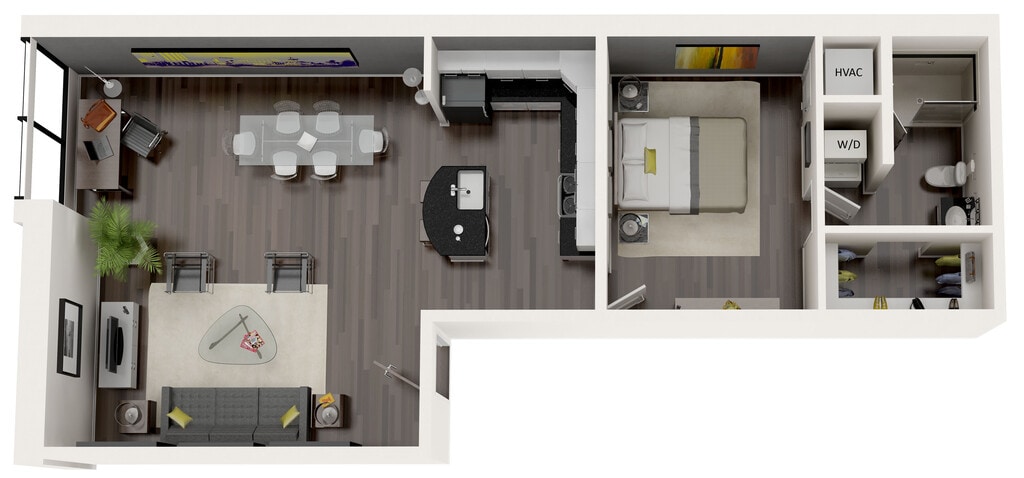 1 Bed, 1 Bath, 597 sq ftModel Gallery