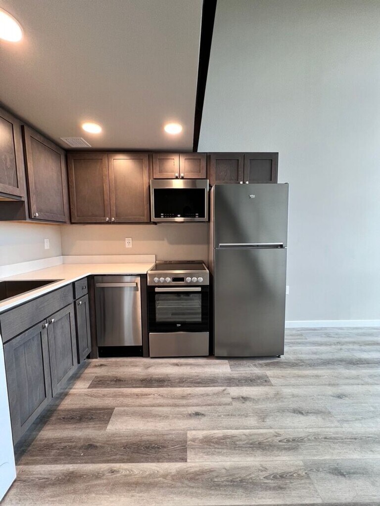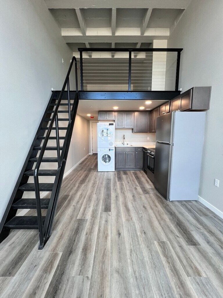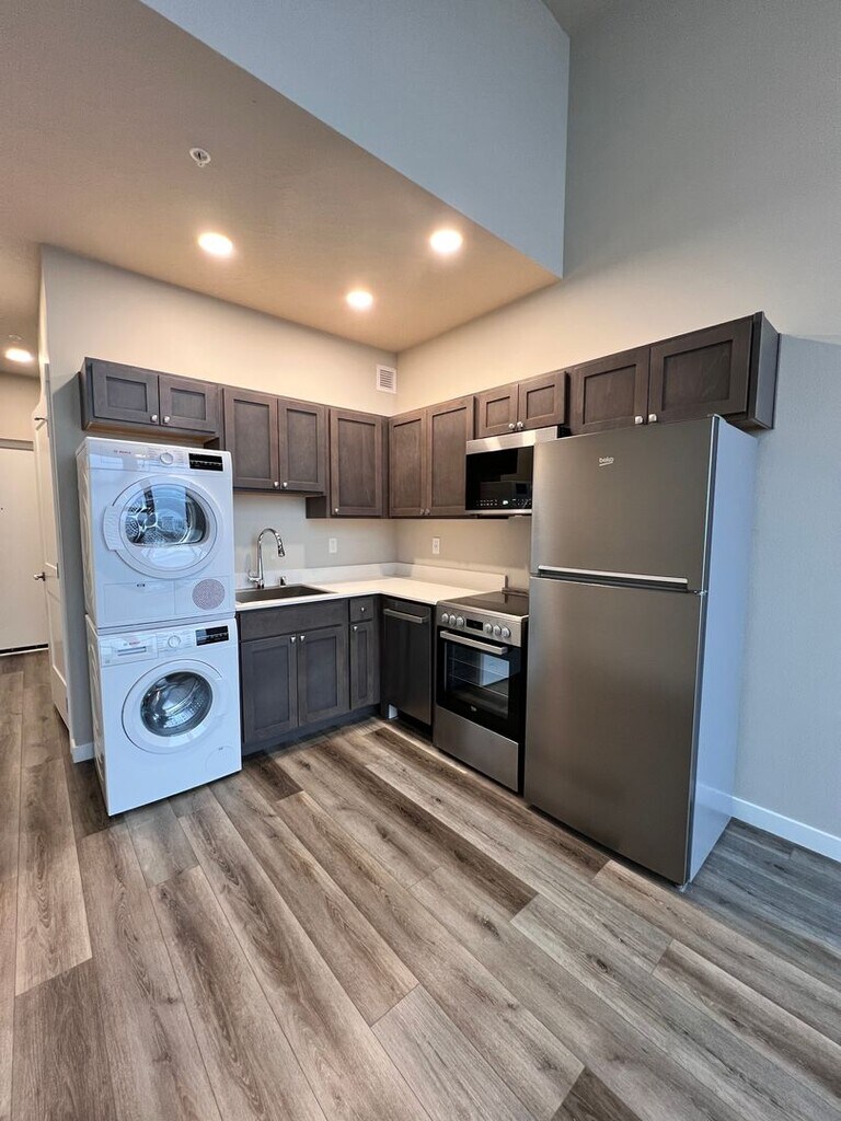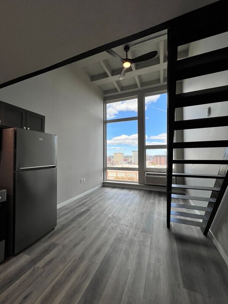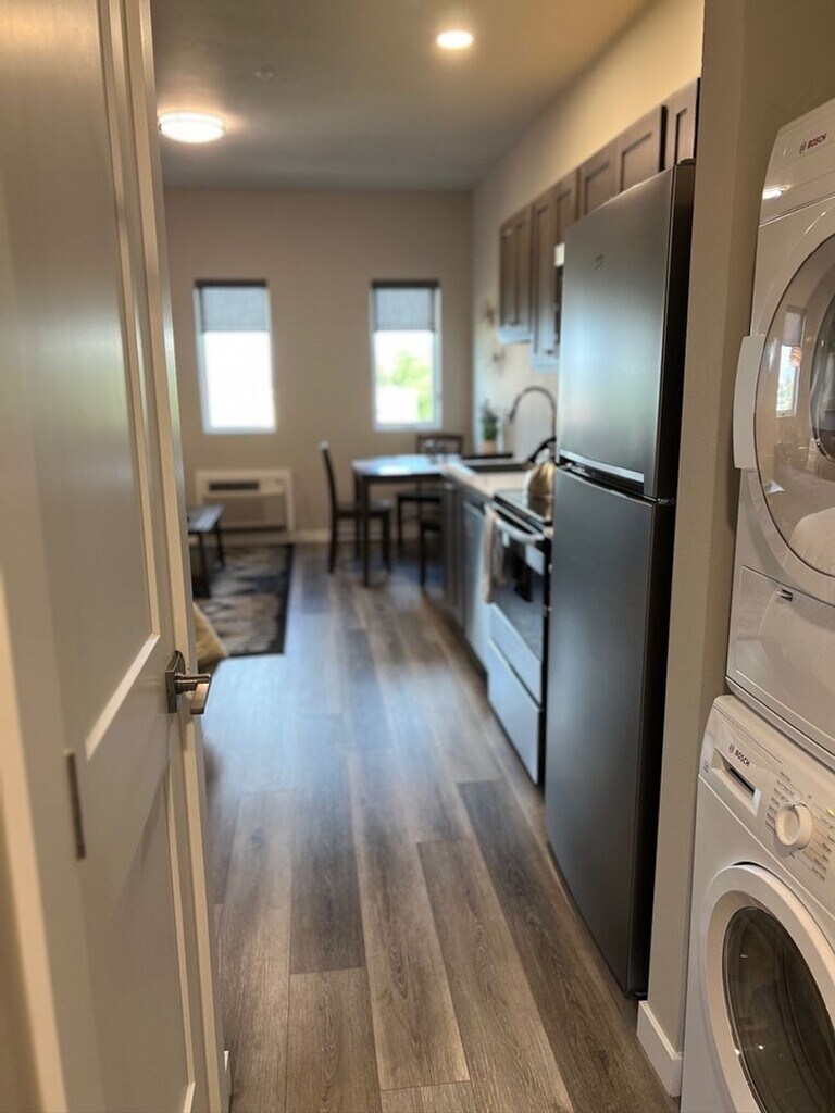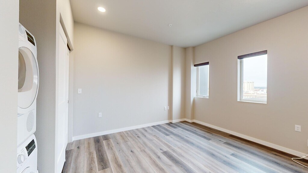 Efficiently designed studio with modern LVP floors, sleek quartz countertops, tiled shower, a stack washer/dryer, and stainless steel kitchen appliances. Enjoy air conditioning, 10' ceilings, and stunning city views in a cozy yet stylish space. Water/Sewer/Garbage/Electricity Flat Rate $155.00 per month. A one-time admin fee of $200. Pet fees and pet rent apply. Standard security deposit includes non-refundable cleaning fee of $275.00. Landlord does not accept Comprehensive reusable tenant screening reports.
