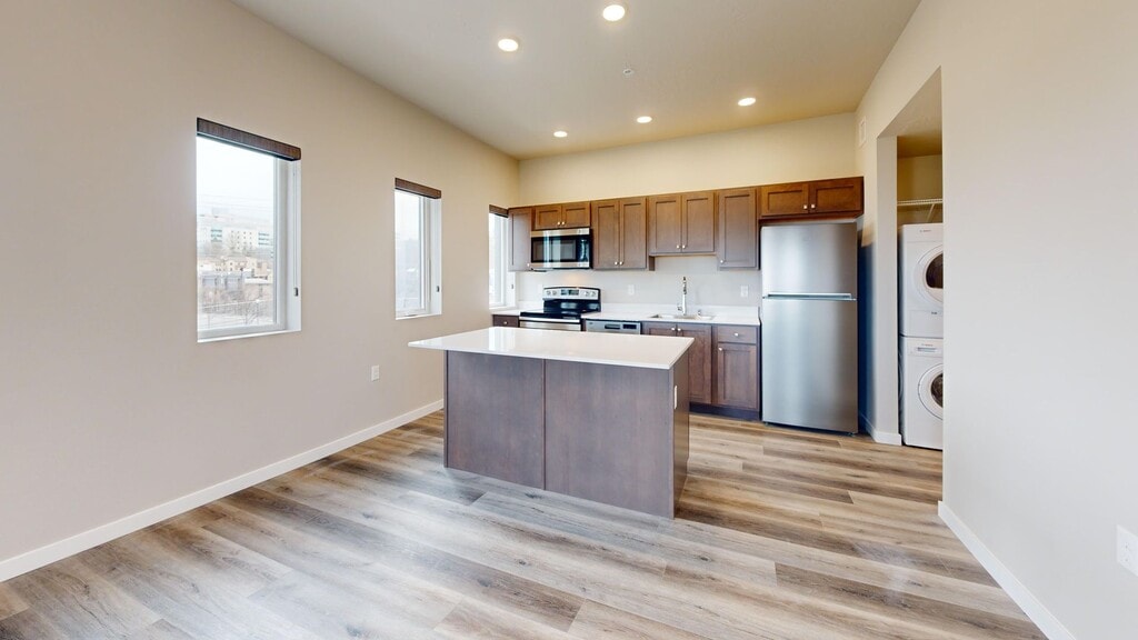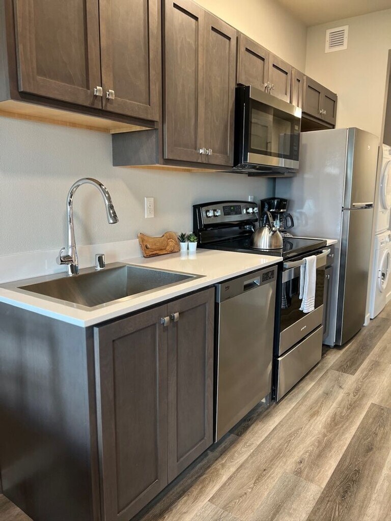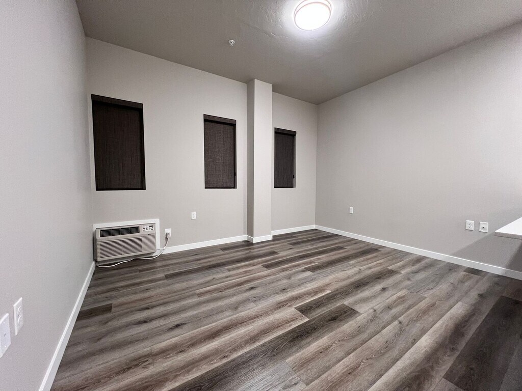 Efficiently designed studio with modern LVP floors, sleek quartz countertops, large tub with tiled shower, a stack washer/dryer, and stainless steel kitchen appliances. Enjoy air conditioning, 10' ceilings, and stunning city views in a cozy yet stylish space. Water/Sewer/Garbage/Electricity Flat Rate $155.00 per month. A one-time admin fee of $200. Pet fees and pet rent apply. Standard security deposit includes non-refundable cleaning fee of $275.00. Landlord does not accept Comprehensive reusable tenant screening reports.