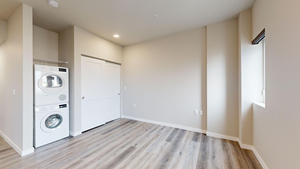 Efficiently designed studio with modern LVP floors, sleek quartz countertops, tiled shower, a stack washer/dryer, and stainless steel kitchen appliances. Enjoy air conditioning, 10' ceilings, and stunning city views in a cozy yet stylish space. Water/Sewer/Garbage/Electricity Flat Rate $155.00 per month. A one-time admin fee of $200. Pet fees and pet rent apply. Standard security deposit includes non-refundable cleaning fee of $275.00. Landlord does not accept Comprehensive reusable tenant screening reports.